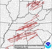 One of the greatest tornado outbreaks ever recorded in November, spanning from Northern Ohio to the Gulf Coast. During the early to mid afternoon, the strongest tornado, an F4, strikes Van Wert, Ohio, destroying a movie theatre that had been evacuated.
