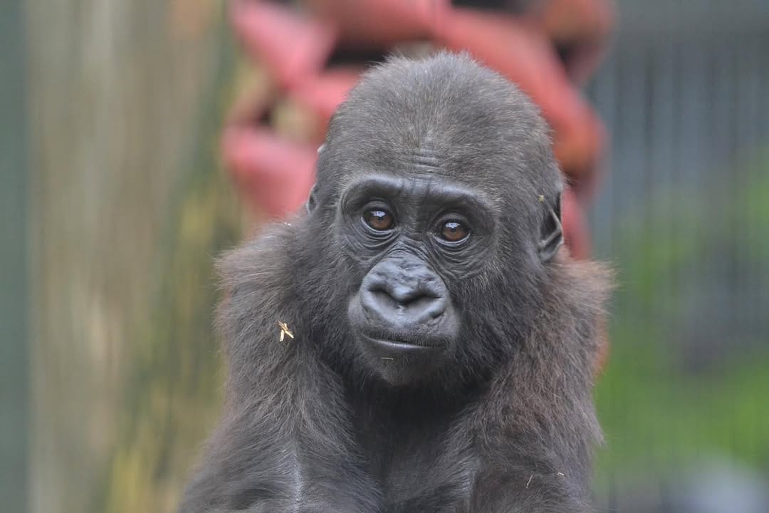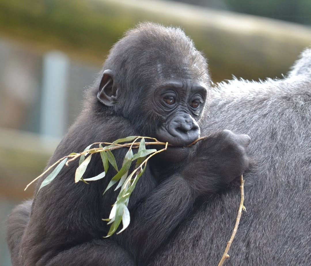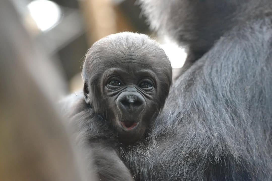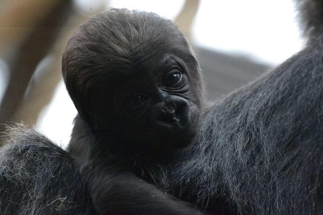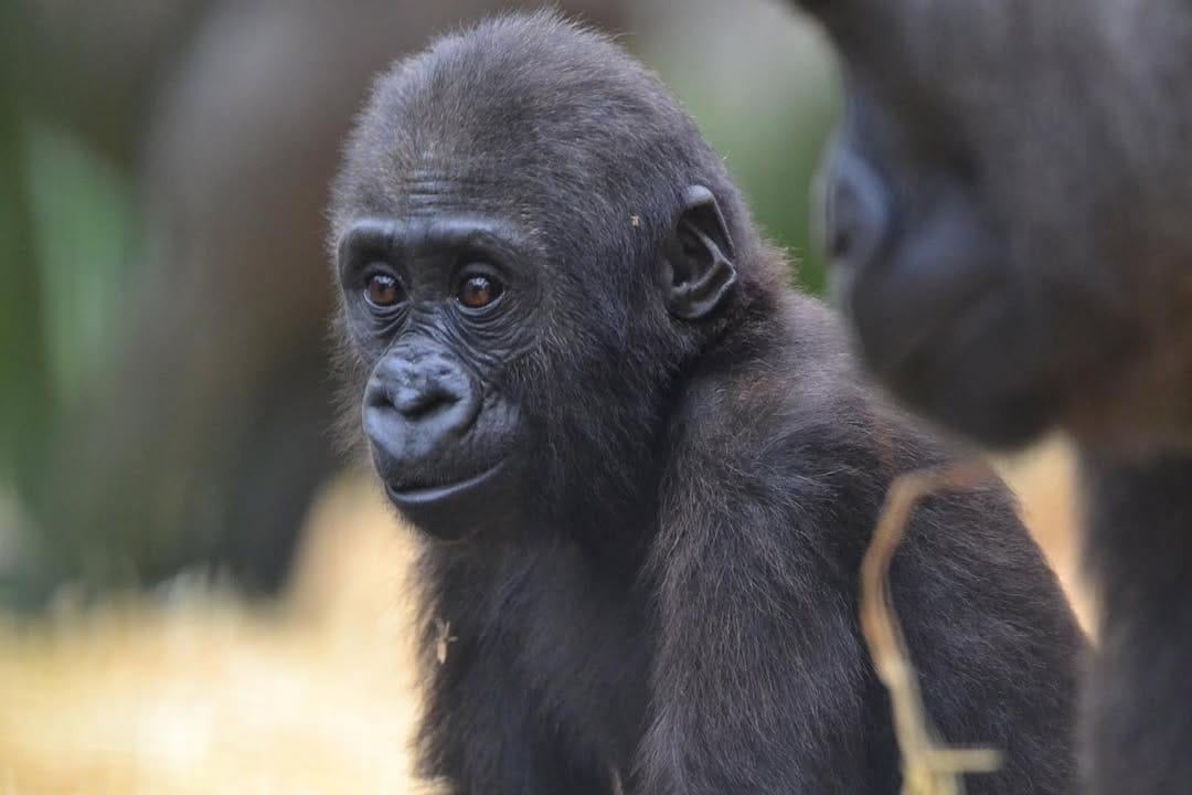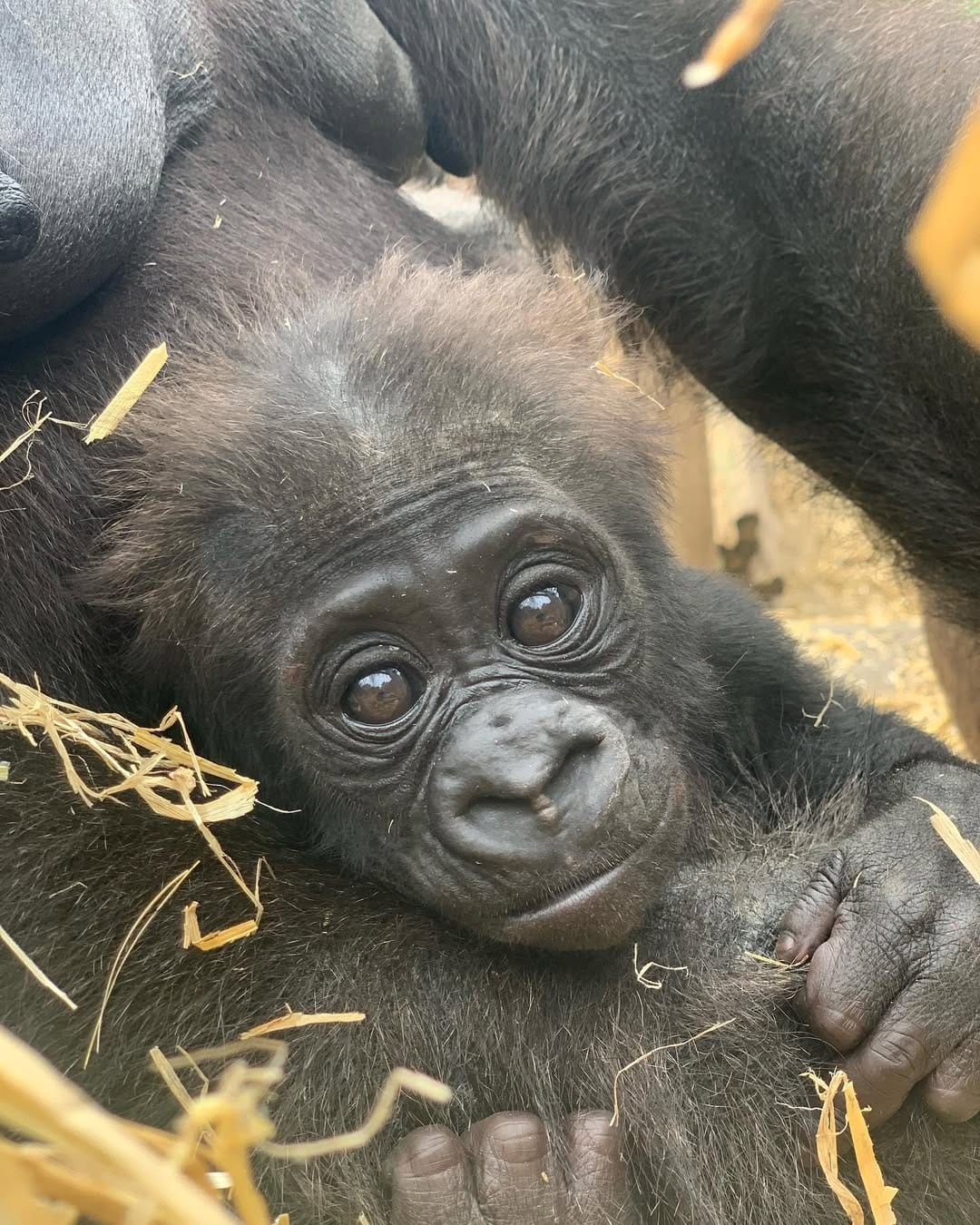 Aarde is a baby Western Lowland gorilla at Chessington World of Adventures & Zoo. He was born on April 24, 2022, to mother Shanga and father Damisi, both part of the Chessington gorilla troop. Aarde is one of nine gorillas in the troop, which includes adults, teenagers, and other babies. Western Lowland gorillas are the smallest and most widespread subspecies of gorilla, native to Central and Western Africa, and are critically endangered. Aarde has been featured as an adorable baby gorilla, often seen playing and exploring his surroundings at the zoo. The troop is led by the silverback Damisi, and includes breeding females and younger gorillas in various life stages.