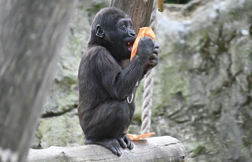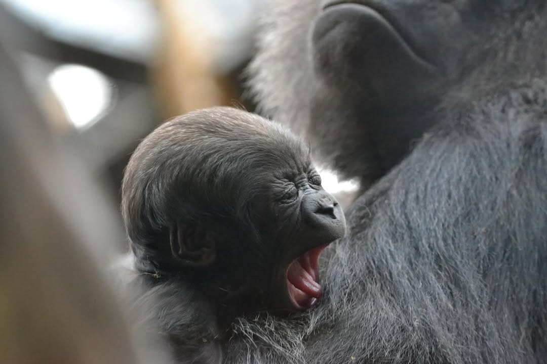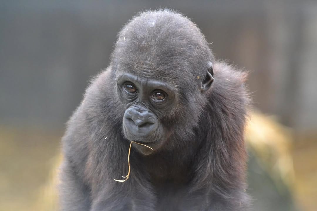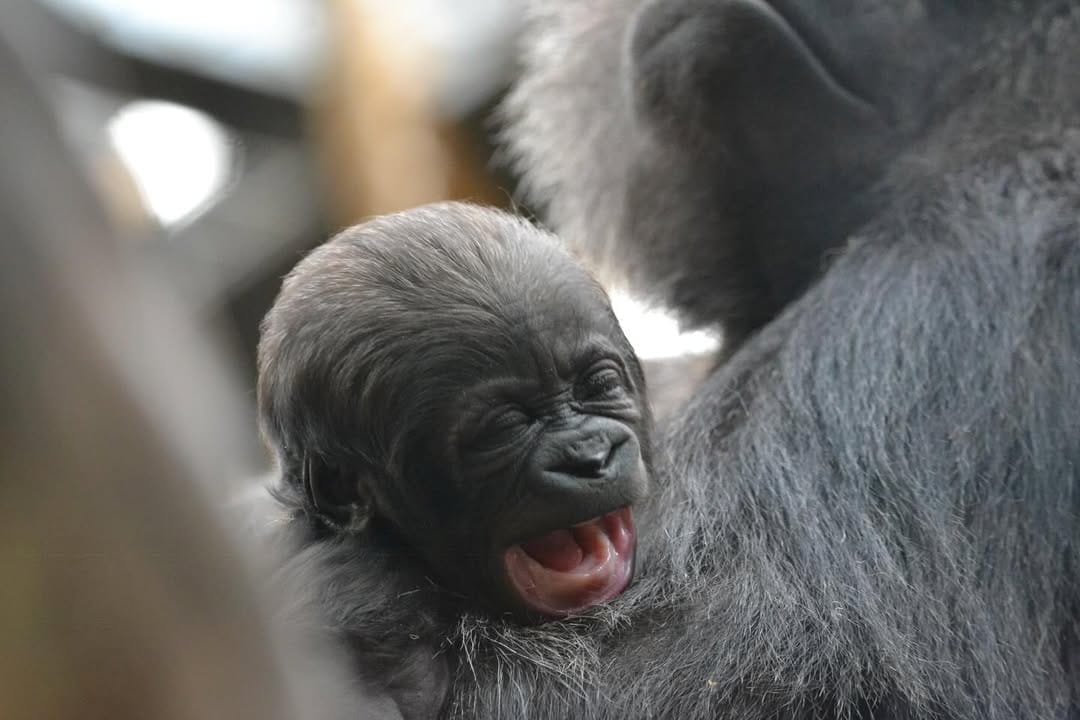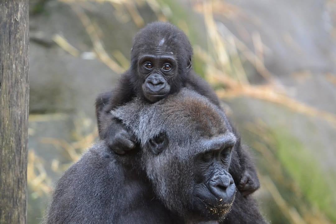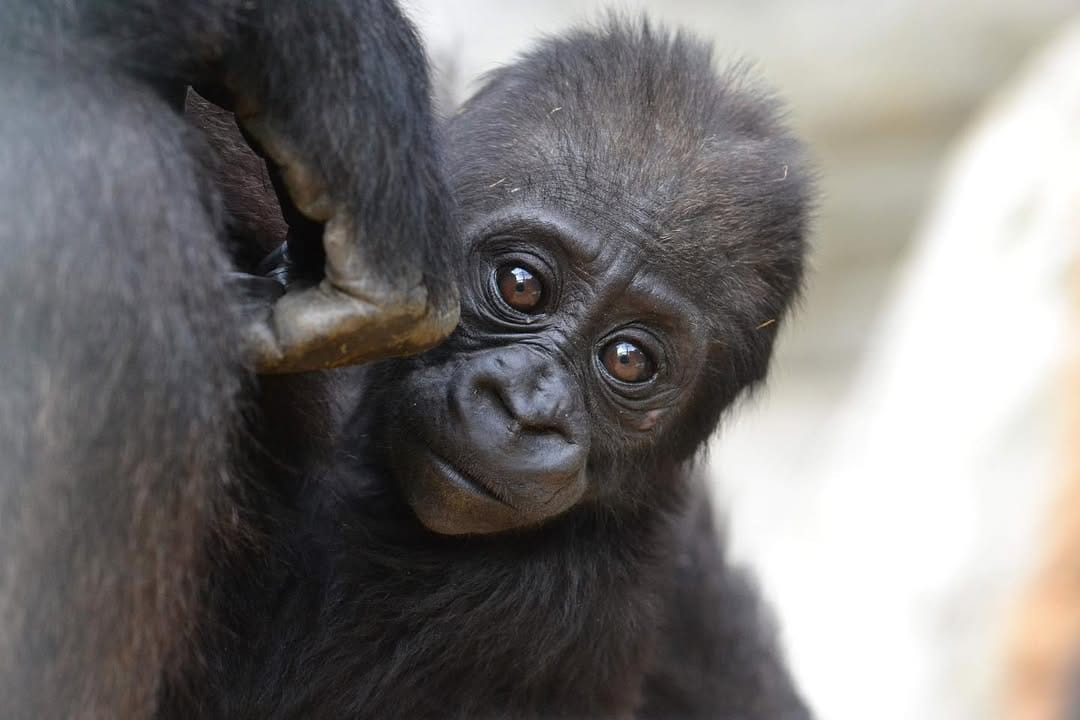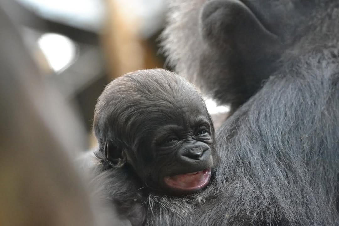 Aarde is a baby Western Lowland gorilla at Chessington World of Adventures & Zoo. He was born on April 24, 2022, to mother Shanga and father Damisi, both part of the Chessington gorilla troop. Aarde is one of nine gorillas in the troop, which includes adults, teenagers, and other babies. Western Lowland gorillas are the smallest and most widespread subspecies of gorilla, native to Central and Western Africa, and are critically endangered. Aarde has been featured as an adorable baby gorilla, often seen playing and exploring his surroundings at the zoo. The troop is led by the silverback Damisi, and includes breeding females and younger gorillas in various life stages.