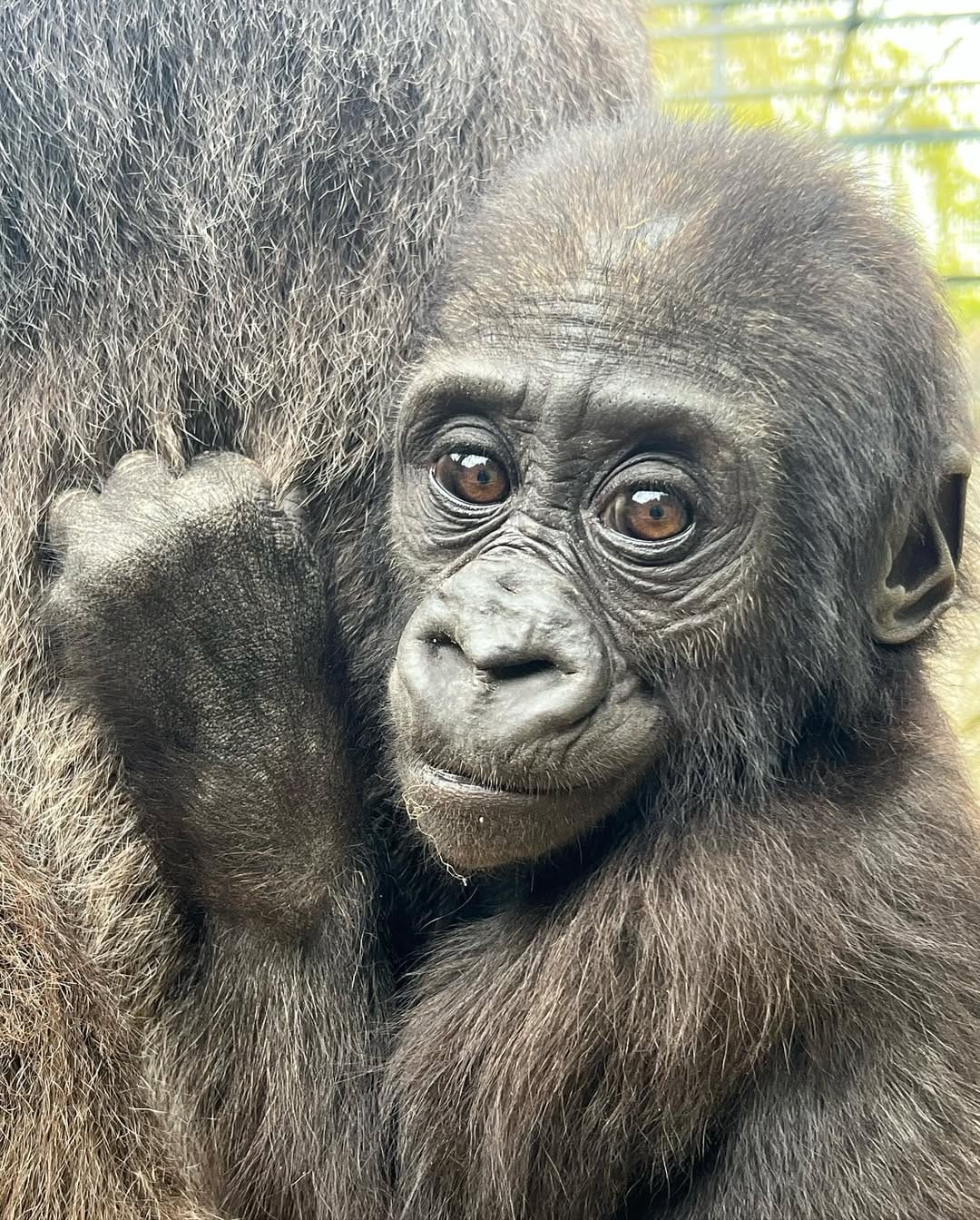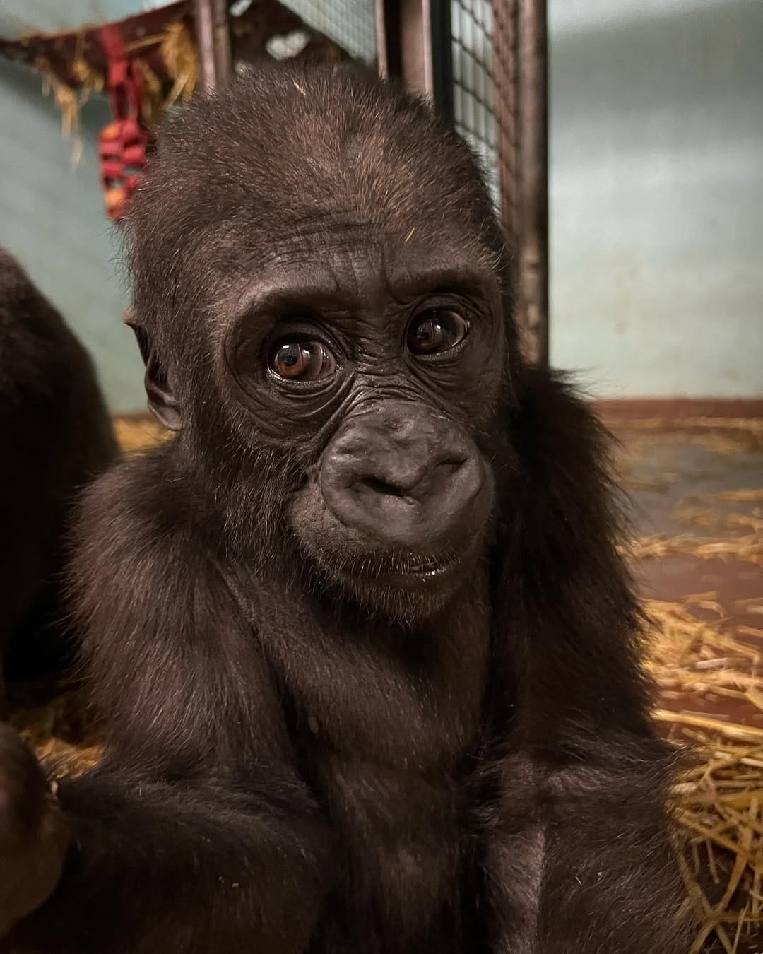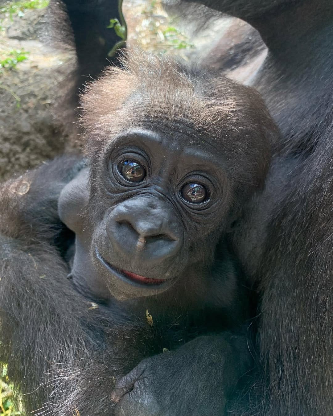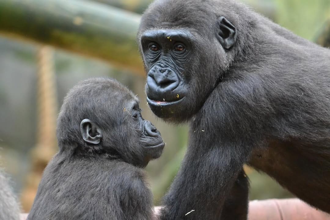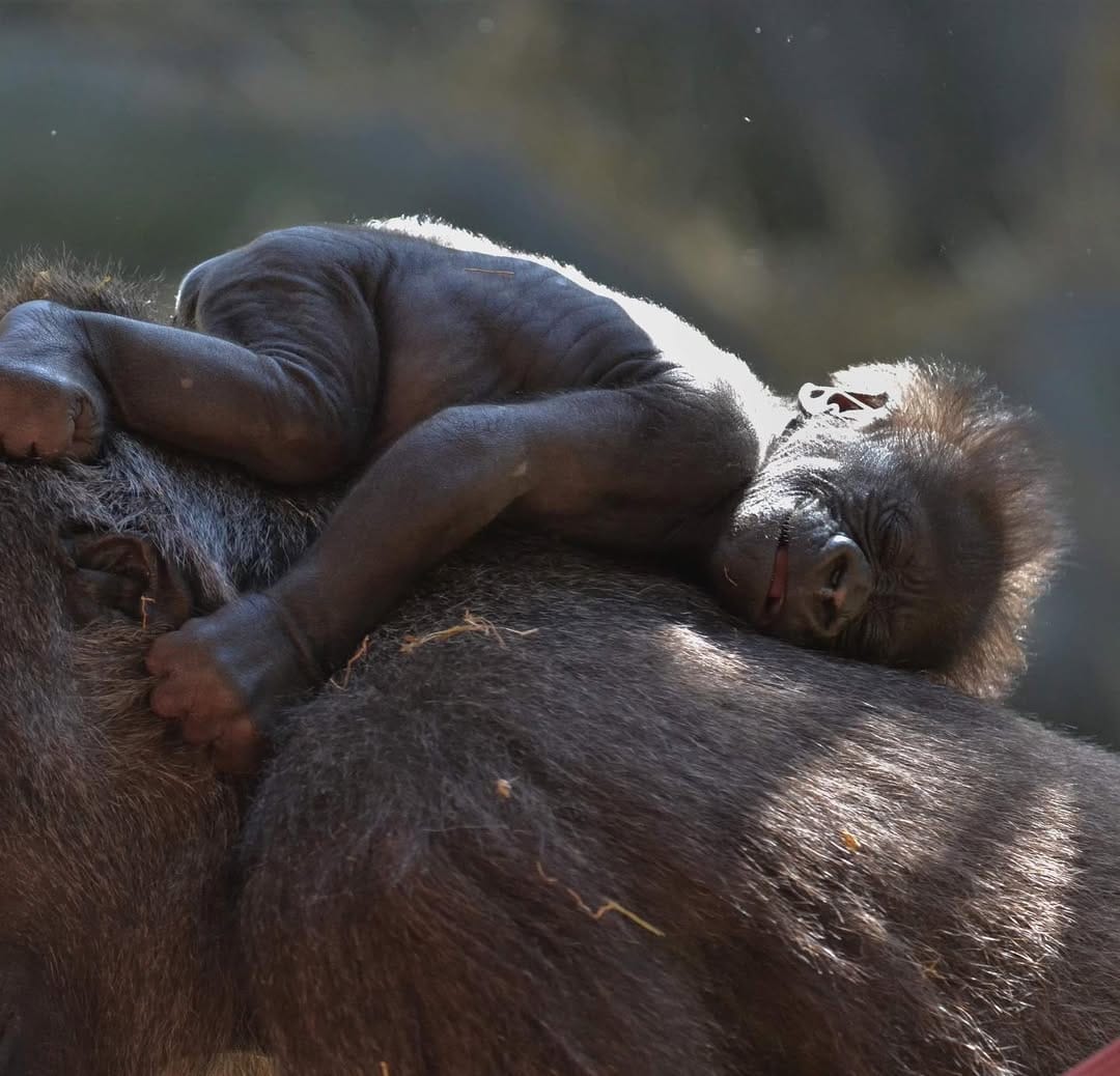 Aarde is a baby Western Lowland gorilla at Chessington World of Adventures & Zoo. He was born on April 24, 2022, to mother Shanga and father Damisi, both part of the Chessington gorilla troop. Aarde is one of nine gorillas in the troop, which includes adults, teenagers, and other babies. Western Lowland gorillas are the smallest and most widespread subspecies of gorilla, native to Central and Western Africa, and are critically endangered. Aarde has been featured as an adorable baby gorilla, often seen playing and exploring his surroundings at the zoo. The troop is led by the silverback Damisi, and includes breeding females and younger gorillas in various life stages.