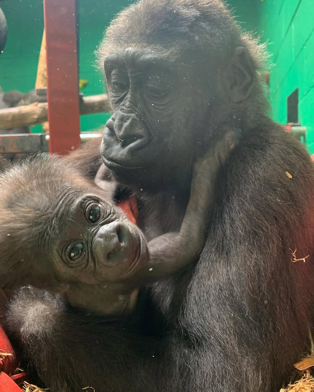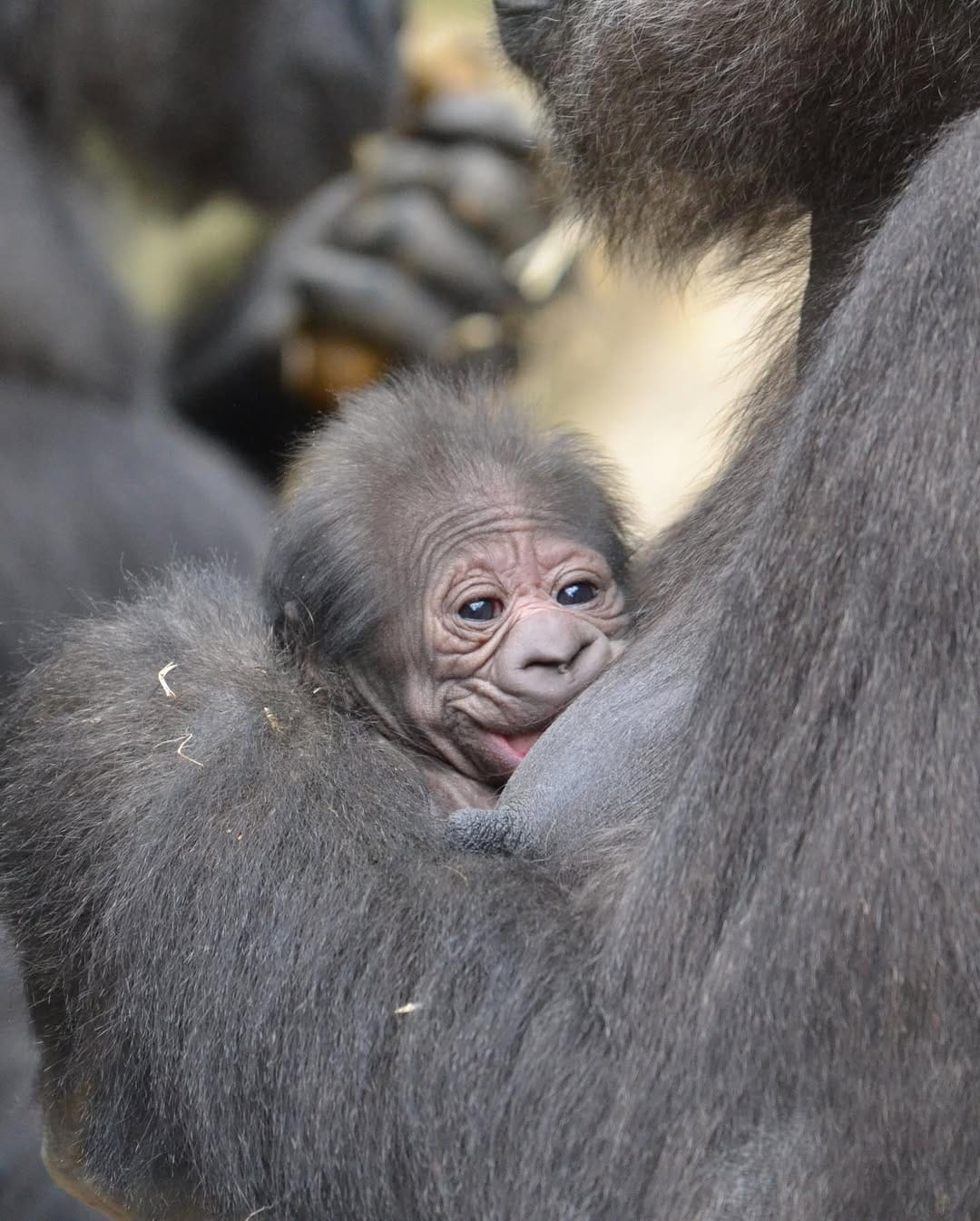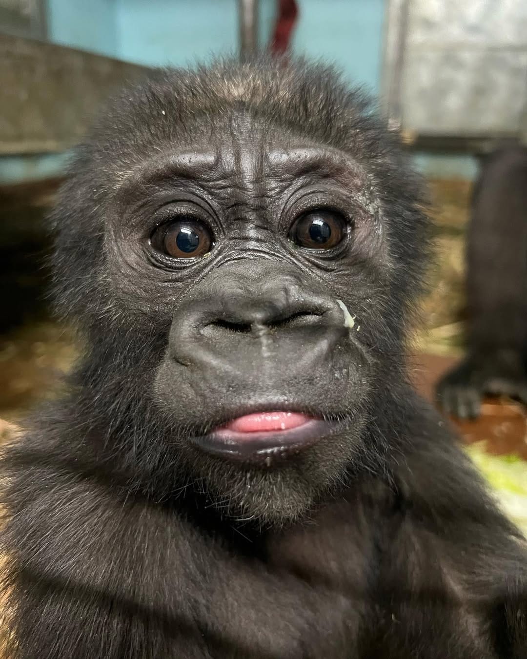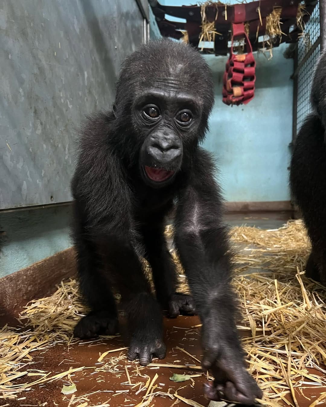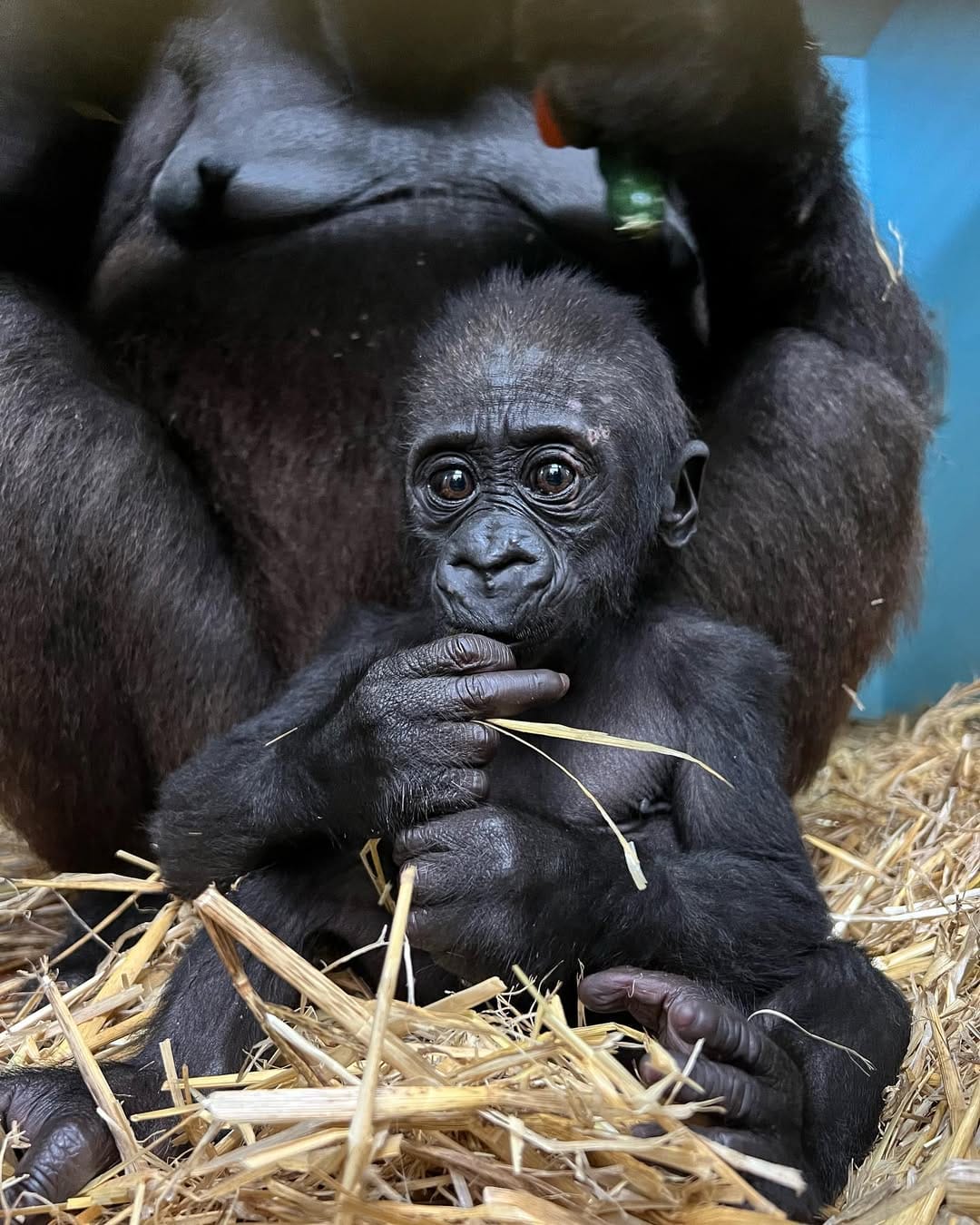 Aarde is a baby Western Lowland gorilla at Chessington World of Adventures & Zoo. He was born on April 24, 2022, to mother Shanga and father Damisi, both part of the Chessington gorilla troop. Aarde is one of nine gorillas in the troop, which includes adults, teenagers, and other babies. Western Lowland gorillas are the smallest and most widespread subspecies of gorilla, native to Central and Western Africa, and are critically endangered. Aarde has been featured as an adorable baby gorilla, often seen playing and exploring his surroundings at the zoo. The troop is led by the silverback Damisi, and includes breeding females and younger gorillas in various life stages.