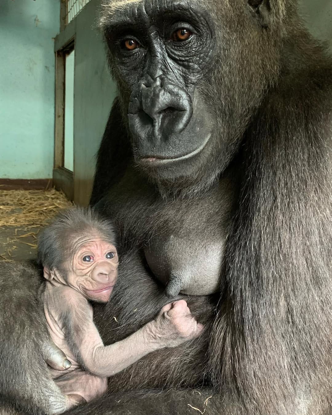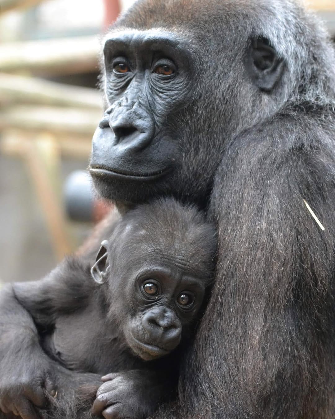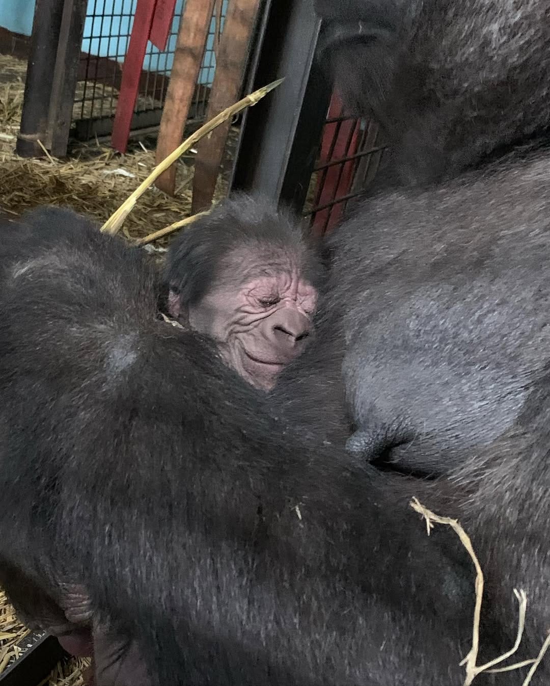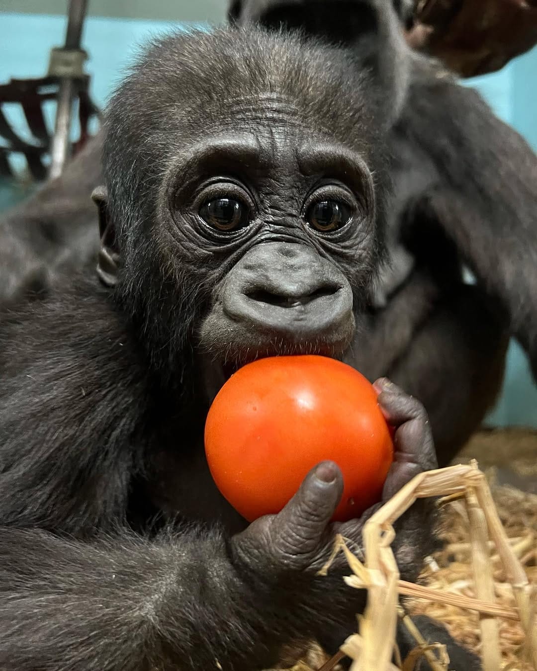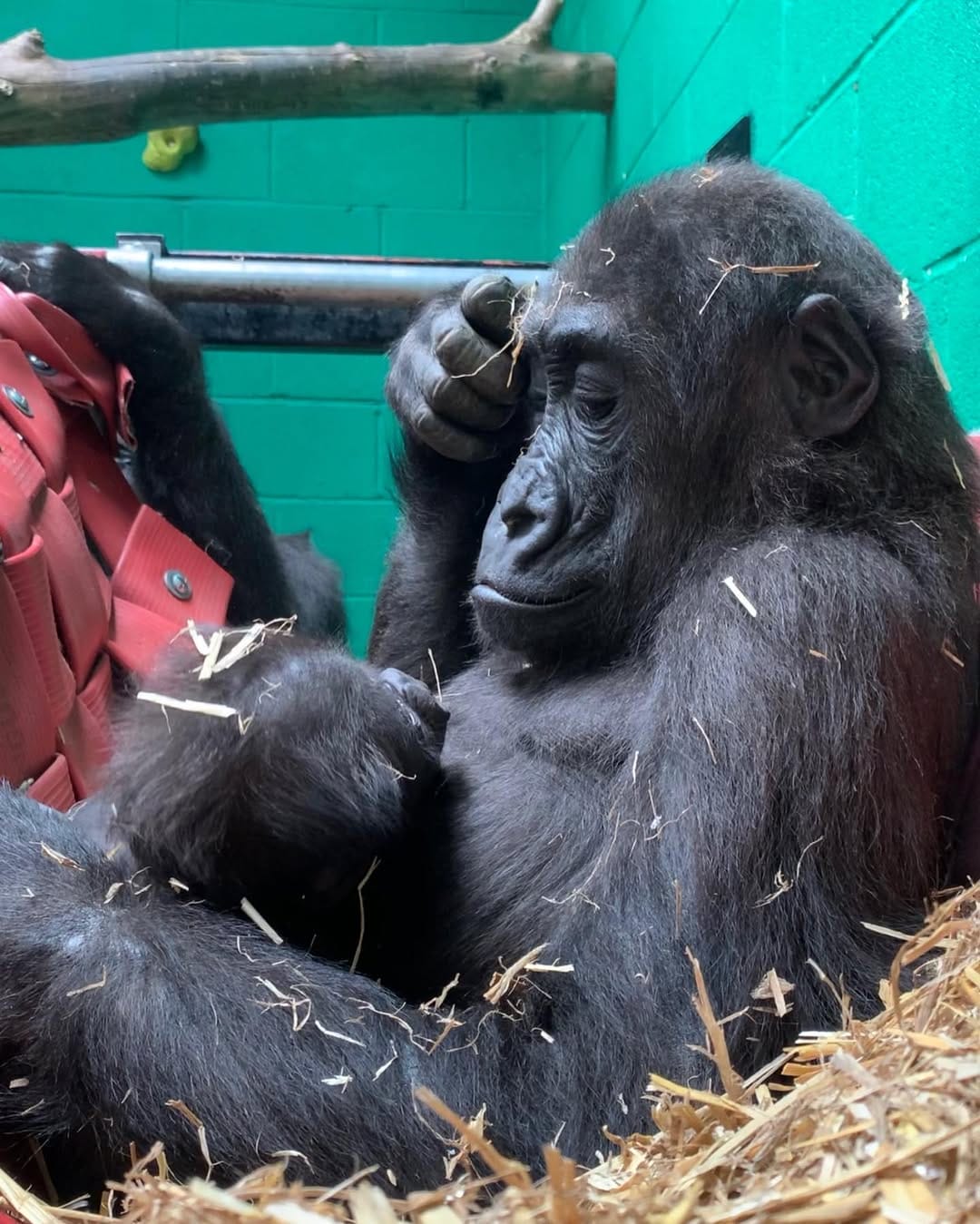 Aarde is a baby Western Lowland gorilla at Chessington World of Adventures & Zoo. He was born on April 24, 2022, to mother Shanga and father Damisi, both part of the Chessington gorilla troop. Aarde is one of nine gorillas in the troop, which includes adults, teenagers, and other babies. Western Lowland gorillas are the smallest and most widespread subspecies of gorilla, native to Central and Western Africa, and are critically endangered. Aarde has been featured as an adorable baby gorilla, often seen playing and exploring his surroundings at the zoo. The troop is led by the silverback Damisi, and includes breeding females and younger gorillas in various life stages.
