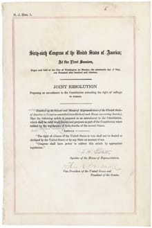 The United States' Constitution was amended to include the Nineteenth Amendment, which granted women the right to vote.