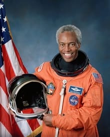 The NASA astronaut Guion Stewart Bluford Jr. was the first African American and the second person to go to space. He flew on three subsequent shuttle missions after serving as a mission specialist on the Challenger orbiter.
