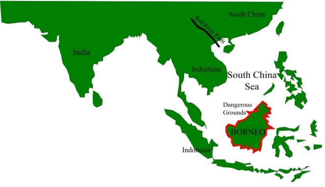 This island lies southwest of the Pacific Ocean. It is approximately 288,869 square miles, making it the third-largest island in the world. It is in the southwest of the Malay Peninsula. In the northwest, it borders the South China Sea. In the northeast, it borders the Sulu sea. In the east, it borders the Celebes sea. In the east lies the Java sea.