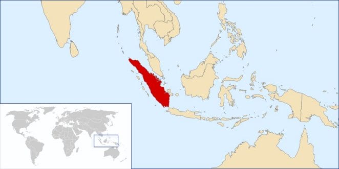 This is an island in Indonesia separated from the Malay Peninsula by the Strait of Malacca in the northeast and by the Sundae Strait from Java in the south. It is approximately 171,069 square miles, making it the sixth largest island in the world. After being occupied by Japan in 1942, the island was included in the Republic of Indonesia in 1950. Sumatra is a nation where Austronesian is spoken. The provinces are separated into several: North Sumatra, West Sumatra, Jambi, South Sumatra, Bengkulu, Lampung and Aceh.