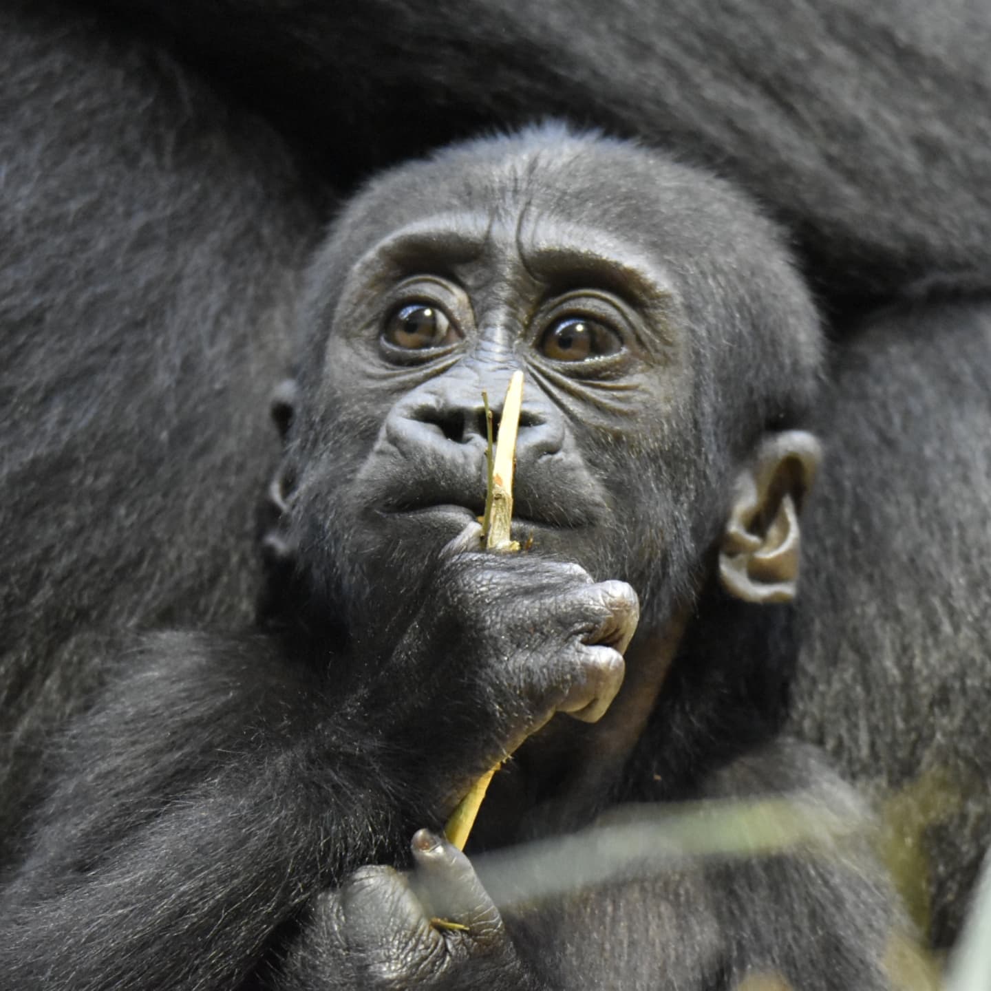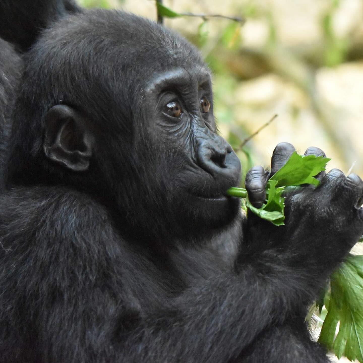 Gaia is a female western lowland gorilla born at Prague Zoo on April 12, 2024, and was notably named by primatologist Jane Goodall after the Greek goddess of the Earth. She is a playful and resilient cub, often seen engaging with her older sister Mobi, sharing a close bond with her mother Kijivu, and being nurtured by the elder gorilla Kamba. Gaia is celebrated for her role in gorilla conservation and education at the zoo.