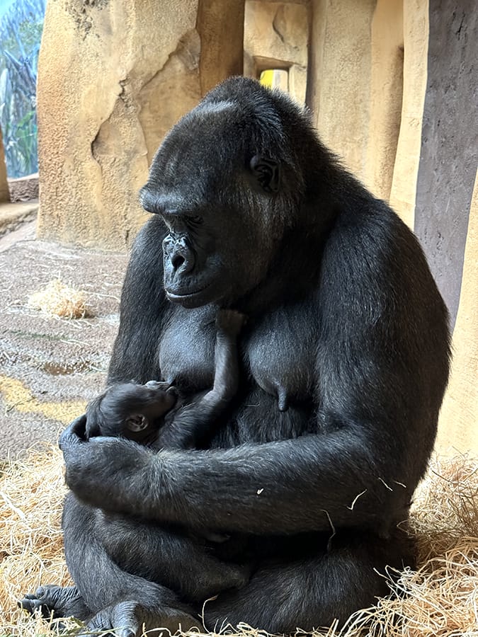 Inkumi is a baby western lowland gorilla born at Zoo de La Palmyre on August 6, 2024. Her name means “little girl” in Rwandan. Inkumi is the 14th gorilla born at the zoo since 1974 and the first offspring of her 34-year-old silverback father, Nyuki, who was hand-raised by the zoo staff after being rejected by his own mother. Inkumi is closely bonded with her mother Ybana, who carries her and protects her while she learns to explore their enclosure and develop climbing skills. Inkumi’s birth is significant as western lowland gorillas are critically endangered due to habitat loss, poaching, and diseases like Ebola. The zoo supports conservation efforts to protect gorillas in the wild, and Inkumi’s growth represents hope for the species’ future.
