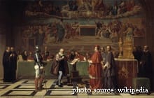 After a heated debate, the Holy Office in Rome orders Galileo Galilei to retract his belief that the Sun, not the Earth, is the centre of the Universe in the form he presented it in.