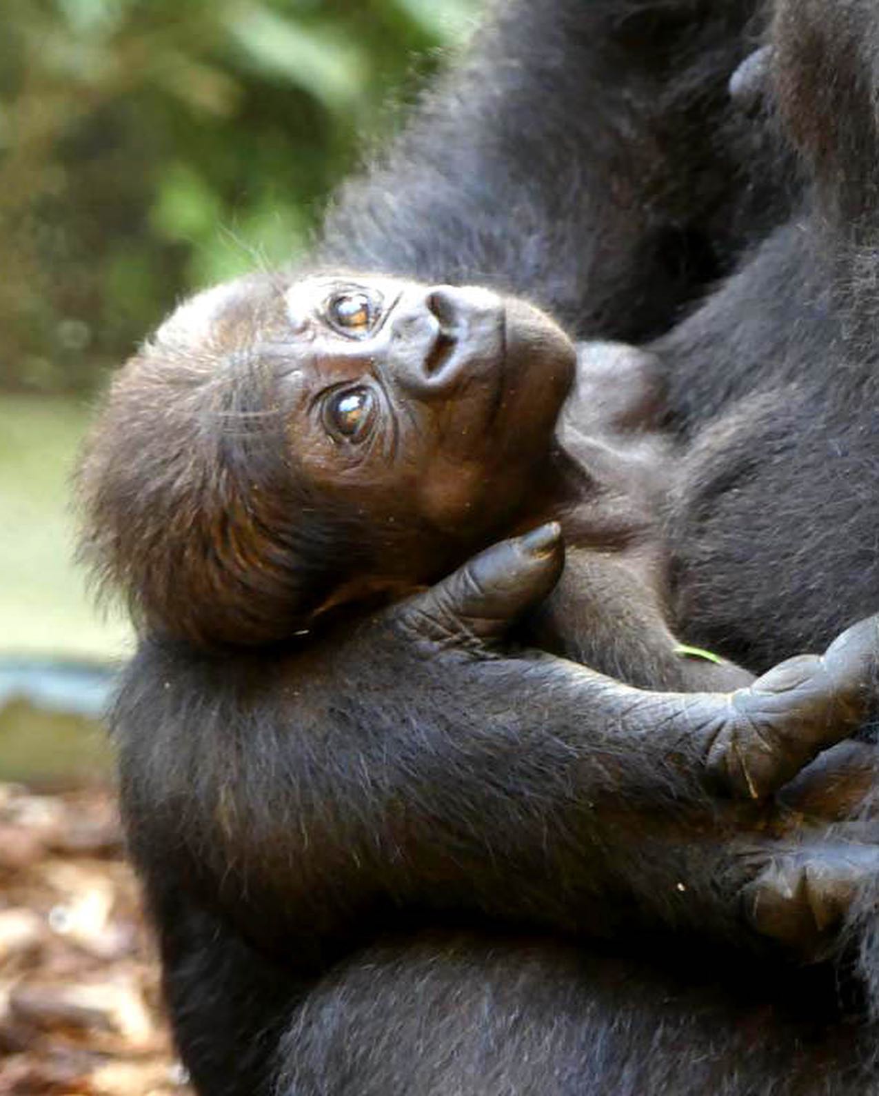 Kesha is a Western lowland gorilla born on March 16, 2020, making history as the first-ever gorilla born at the Rostock Zoo.