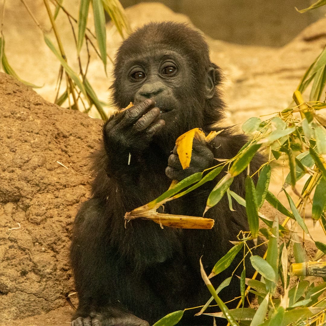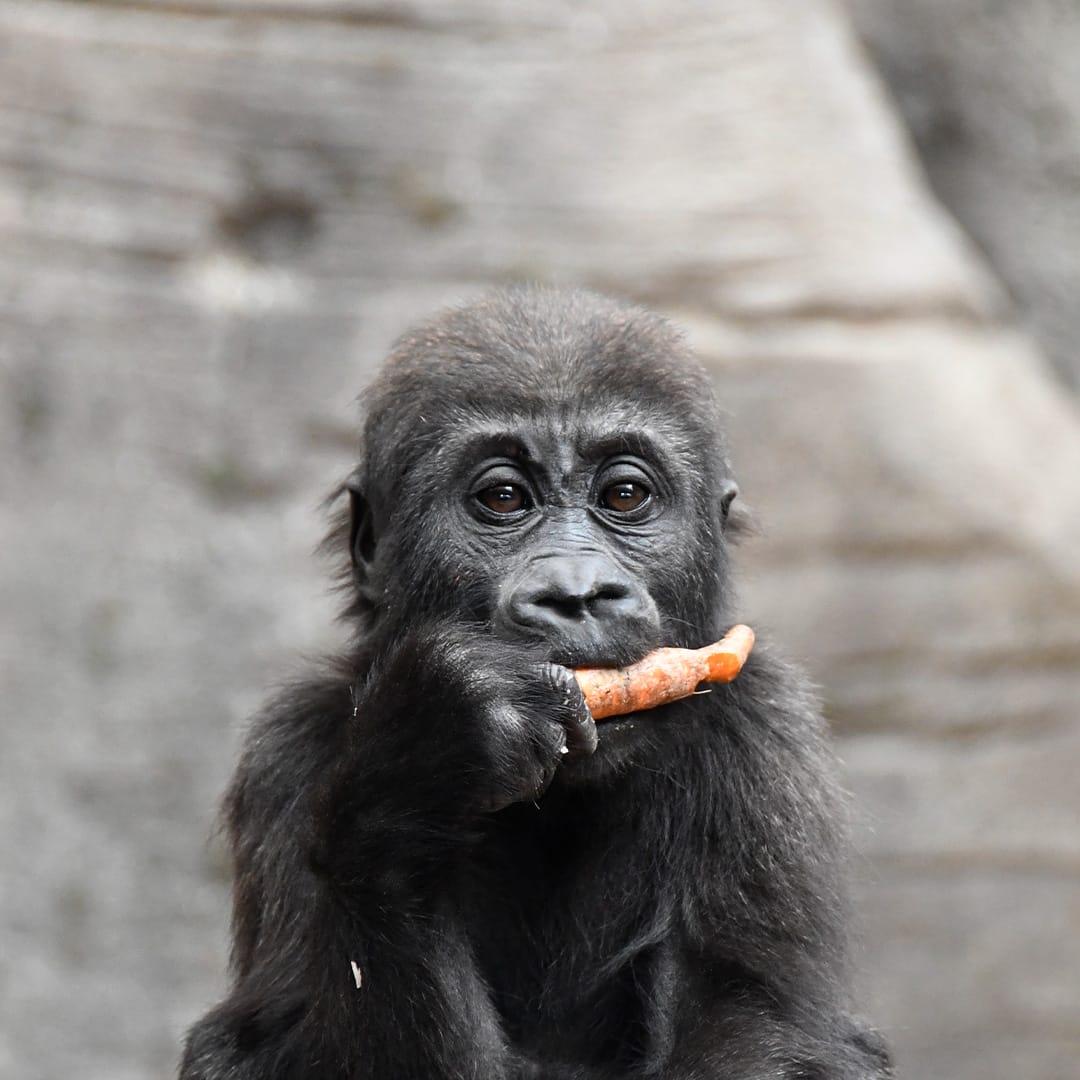 Kibo is a male Western Lowland Gorilla born at the Zoo Aquarium de Madrid in January 2022 to his mother, Kukeña. He lives within a social family troop led by the silverback Malabo and represents a vital contribution to the European Endangered Species Programme (EEP) for this critically endangered species. Known for his playful and active nature, Kibo has quickly become a favorite among visitors as he grows up in the zoo’s “Land of Gorillas” facility.