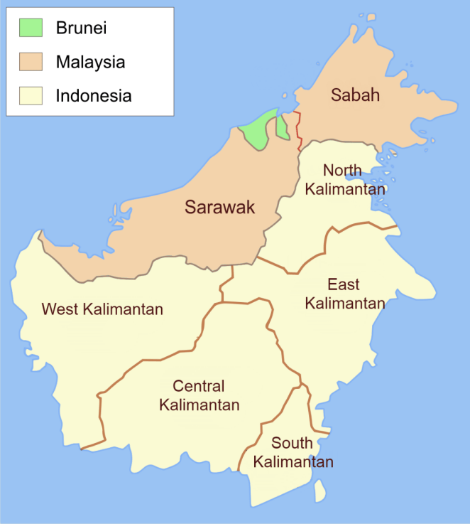 - Borneo Island is the third-biggest island in the world, behind Greenland and New Guinea, and the largest island in Asia. Located in Southeast Asia, Borneo is a tropical island that is shared by the Malaysian states of Sabah and Sarawak, as well as the Southeast Asian nations of Brunei and Indonesia.