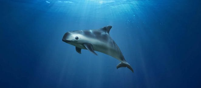 One of the most endangered species of marine animal is the vaquita. The Vaquita can only be found in a small area of the northern section of the Gulf of California, Mexico , with about 10 individuals remaining. At just over 100 pounds and a length of approximately 4-5 feet (1.2-1.5 metres), it’s the smallest known cetacean (whale, dolphin, or porpoise) in existence today (45 kg).