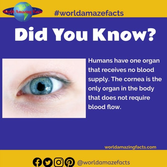 17: Humans have one organ that receives no blood supply. The cornea is the only organ in the body that does not require blood flow.