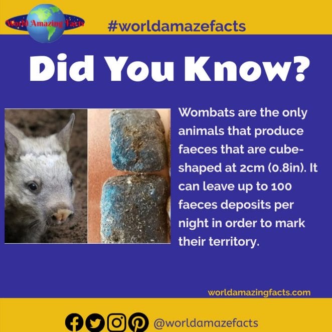 22: Wombats are the only animals that produce faeces that are cube-shaped at 2cm (0.8in). It can leave up to 100 faeces deposits per night in order to mark their territory.