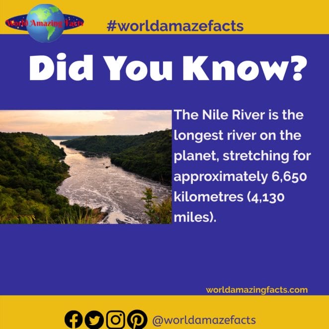 7: The Nile River is the longest river on the planet, stretching for approximately 6,650 kilometres (4,130 miles).