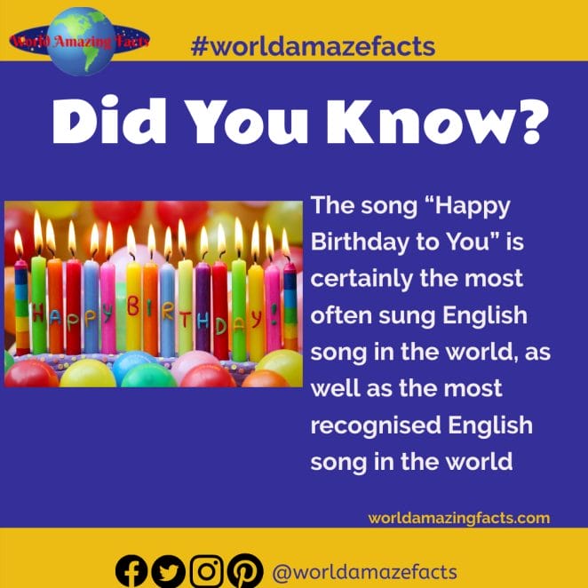 9: The song “Happy Birthday to You” is certainly the most often sung English song in the world, as well as the most recognised English song in the world.