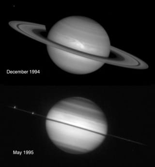 - Two times every 29 and a half years, Saturn appears without its rings. Due to the fact that they are edge-on when viewed from Earth, Saturn’s rings are invisible to humans on the planet. When observed from a distance, they are barely visible, even with the most powerful telescopes available. Previously, this occurred in 2008-2009, and it is expected to occur again in 2024-2025.