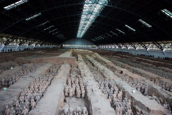 One of the most impressive collections of life-size Terracotta sculptures in combat formations, the Terracotta Warriors and Horses of Emperor Qin Shi Huang (259 – 210BC) is found in Xi’an, China, and it depicts the colossal imperial guard forces of Emperor Qin Shi Huang.