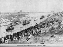 The Suez Canal, which connects the Mediterranean Sea and the Red Sea, is opened in Egypt.