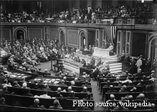 President Woodrow Wilson of the United States requested a declaration of war against Germany from Congress.
