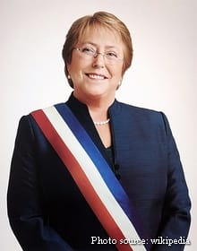 Michelle Bachelet, a Chilean politician, became the country’s first female president when she was sworn in.
