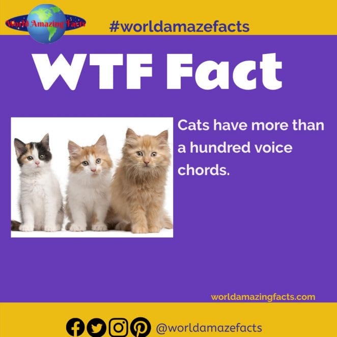 31. Cats have more than a hundred voice chords.