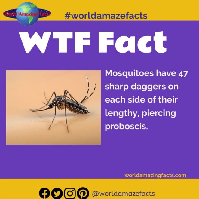 39. Mosquitoes have 47 sharp daggers on each side of their lengthy, piercing proboscis.