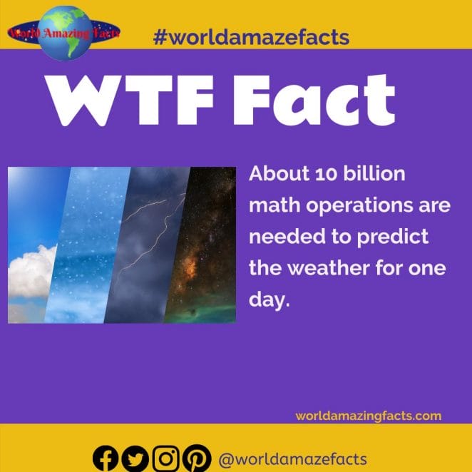 40. About 10 billion math operations are needed to predict the weather for one day.