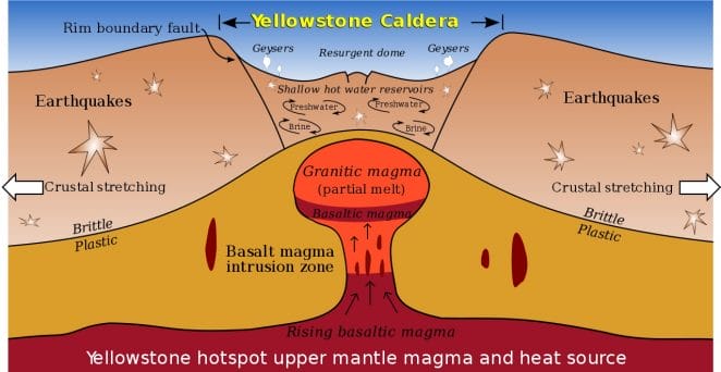 The most recent eruption at Yellowstone happened 640,000 years ago, and it was the largest of those three. But there’s no yellow magma in sight! How does an eruption happen when there’s no visible yellow magma?